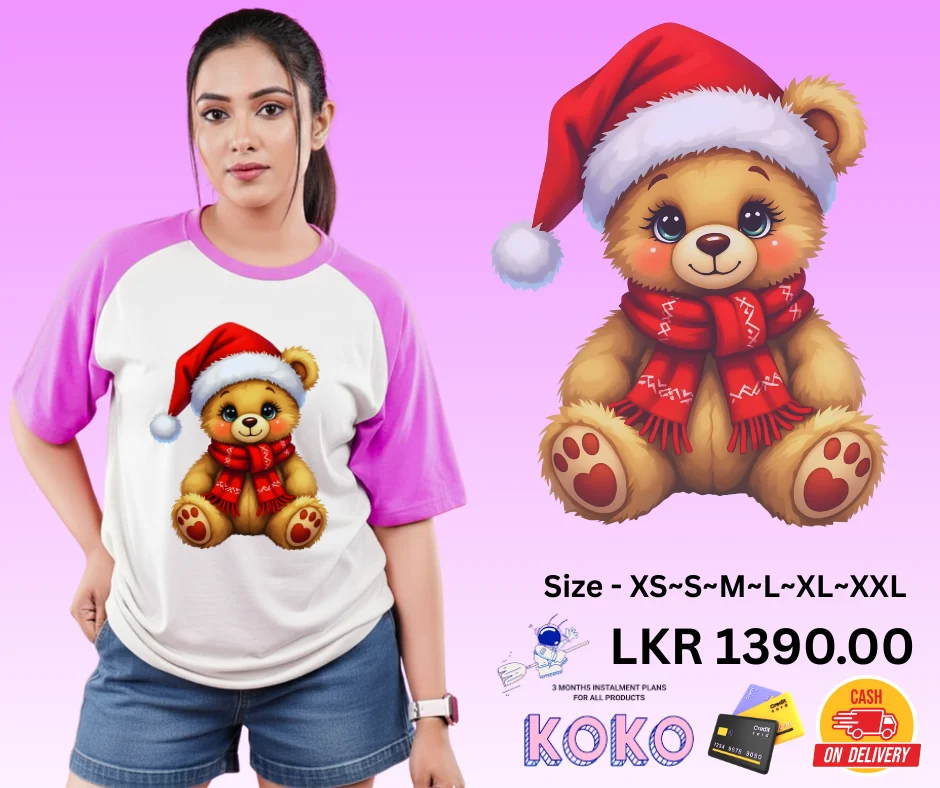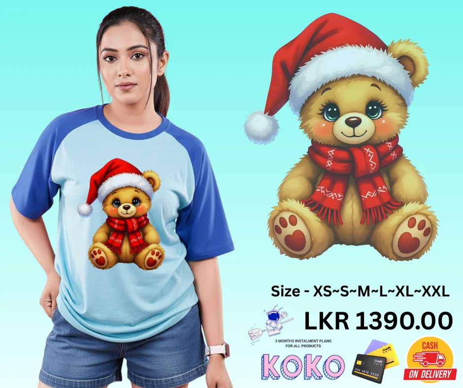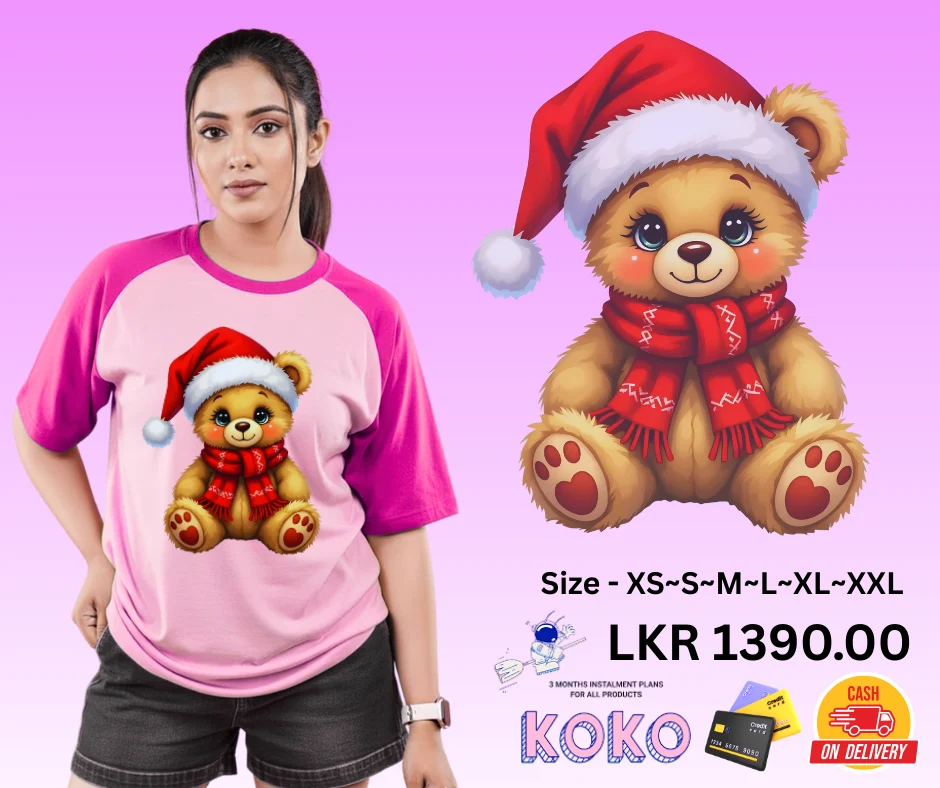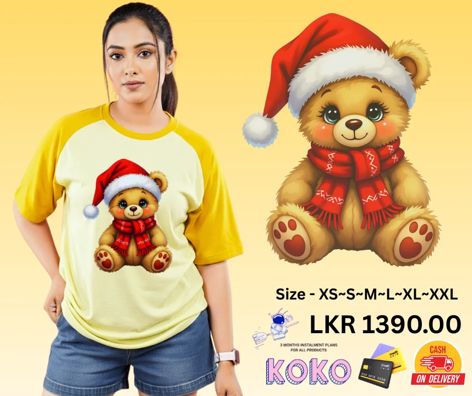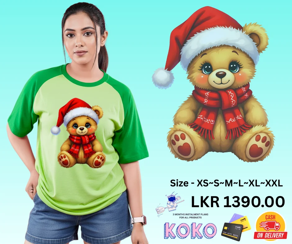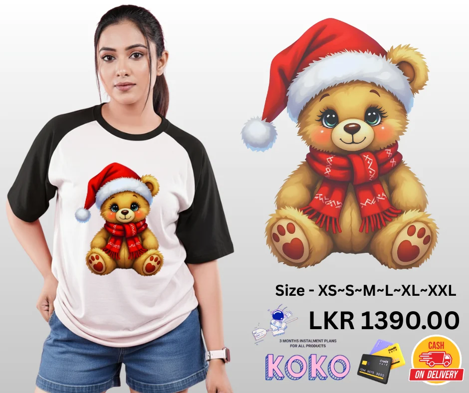 CHRISTMAS BEAR PRINTED RAGLAN SLEEVE T SHIRT